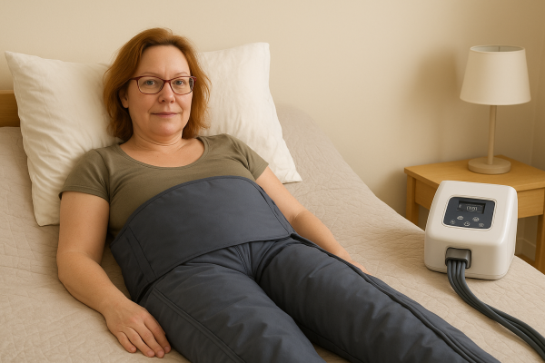 Seit 2 Wochen bin ich Besitzerin eines Lymphomaten. Nachdem ich in der ersten Woche jeden Abend drin lag, gehe ich jetzt nur noch jeden 2. Tag hin das Gerät und lasse mich für 40 Minuten lymphen, natürlich zusätzlich zur zweimal wöchentlichen Lymphdrainage. Das Gerät erfüllt seinen Zweck. In der ersten Woche musste ich nach der abendlichen Anwendung ca. dreimal die Nacht ins Bad gehen… Der Druck aus meinen Oberschenkeln wird tatsächlich etwas weniger und es nimmt einem das unangenehme Gefühl. Das merkte ich stark als ich einmal nur am 3. Tag ins Gerät ging (ich war abends zu müde….) und am nächsten Tag spürte ich den Druck unangenehm deutlich. Ich kann es sogar auf der Waage verfolgen, wann ich im Gerät war und wann nicht. Am nächsten Morgen sehe ich die Gewichtsstabilität oder eben auch nicht die Stabilität.